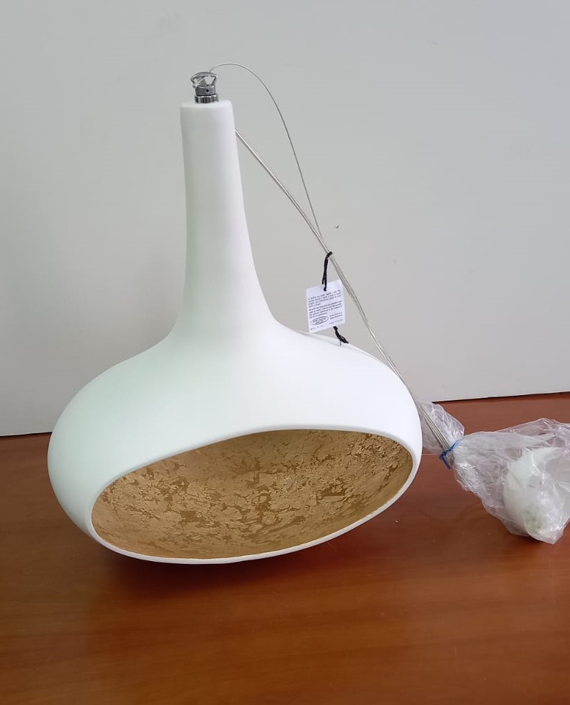 Подвесной светильник GOCCIA на регулируемом тросе. Плафон с оригинальным дизайном выполнен из керамики белого цвета с золотой отделкой внутри. Дизайн: Christian Piccolo.
