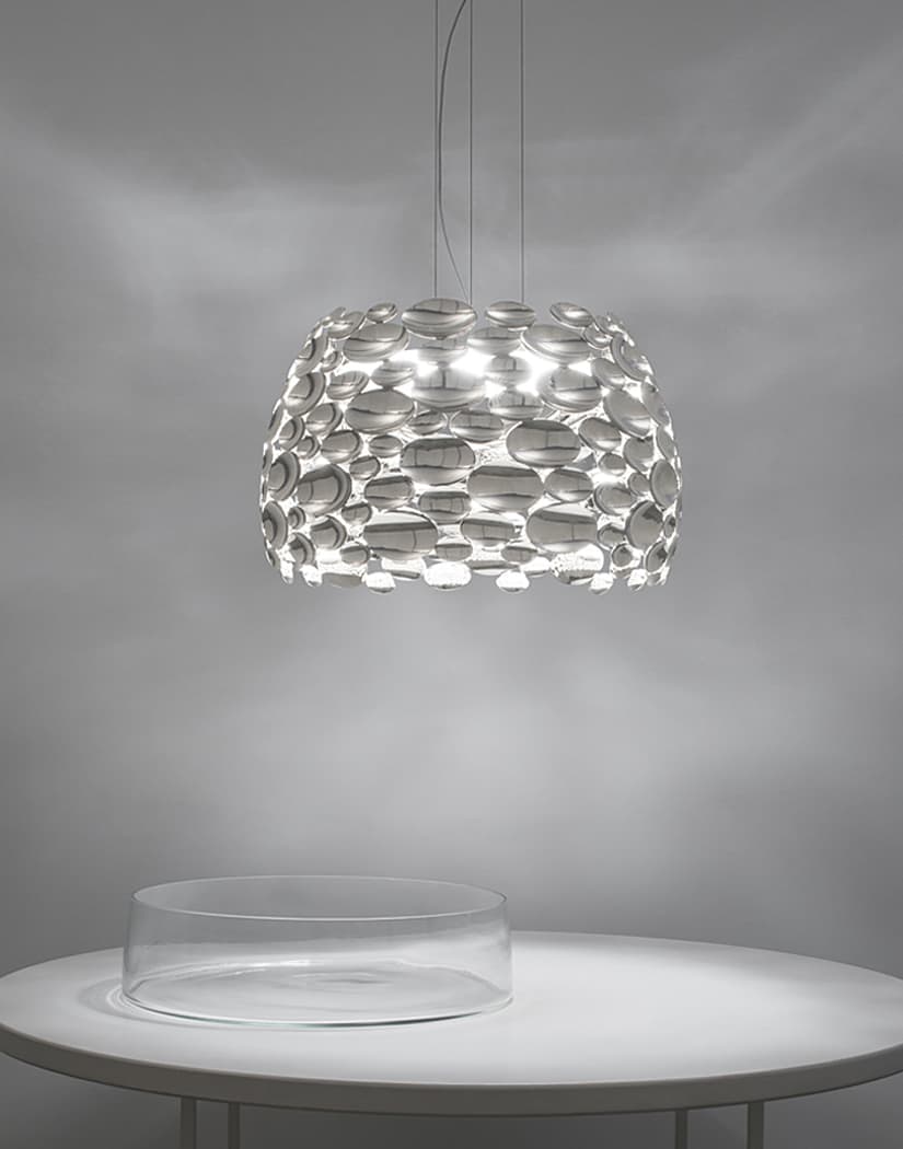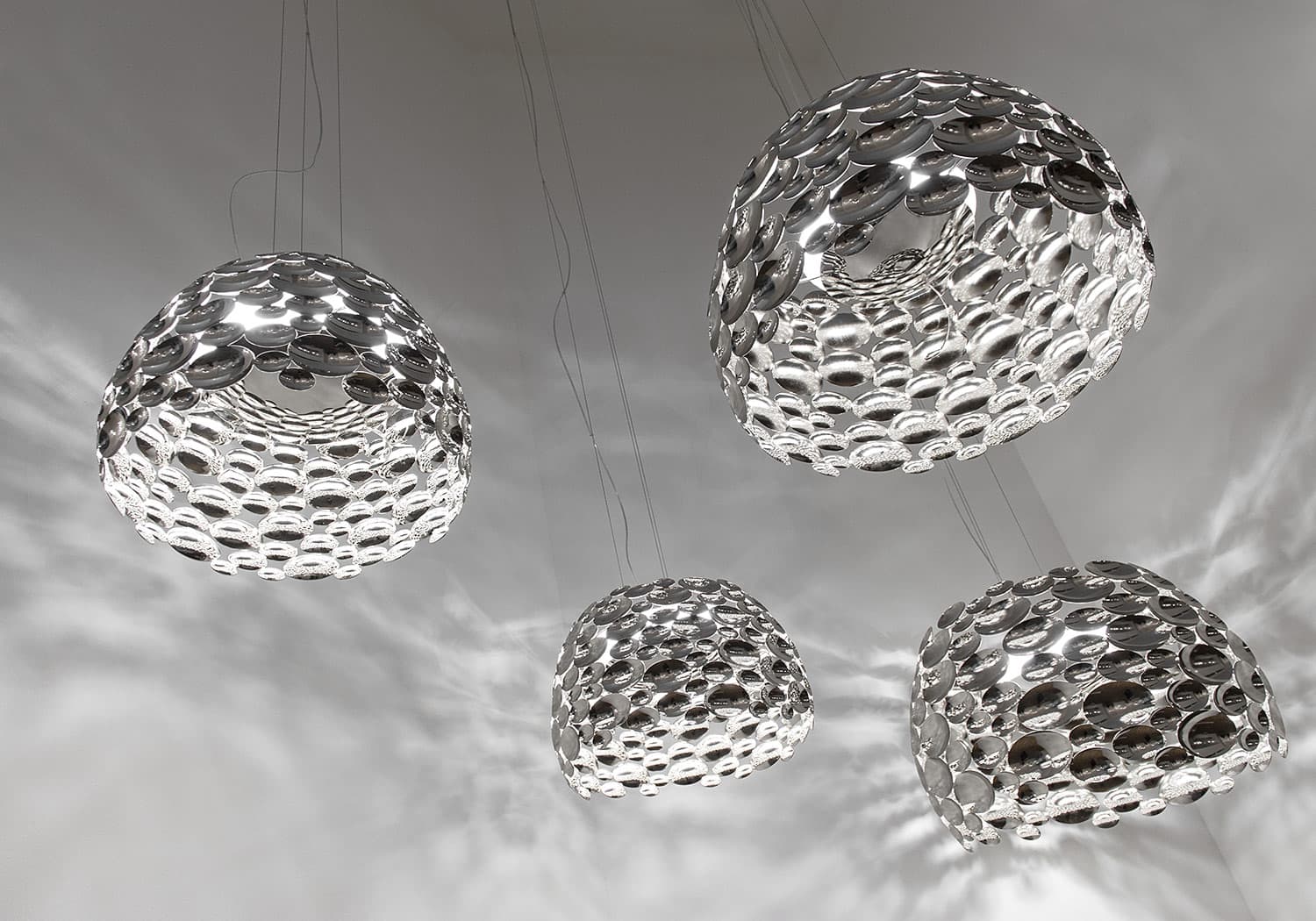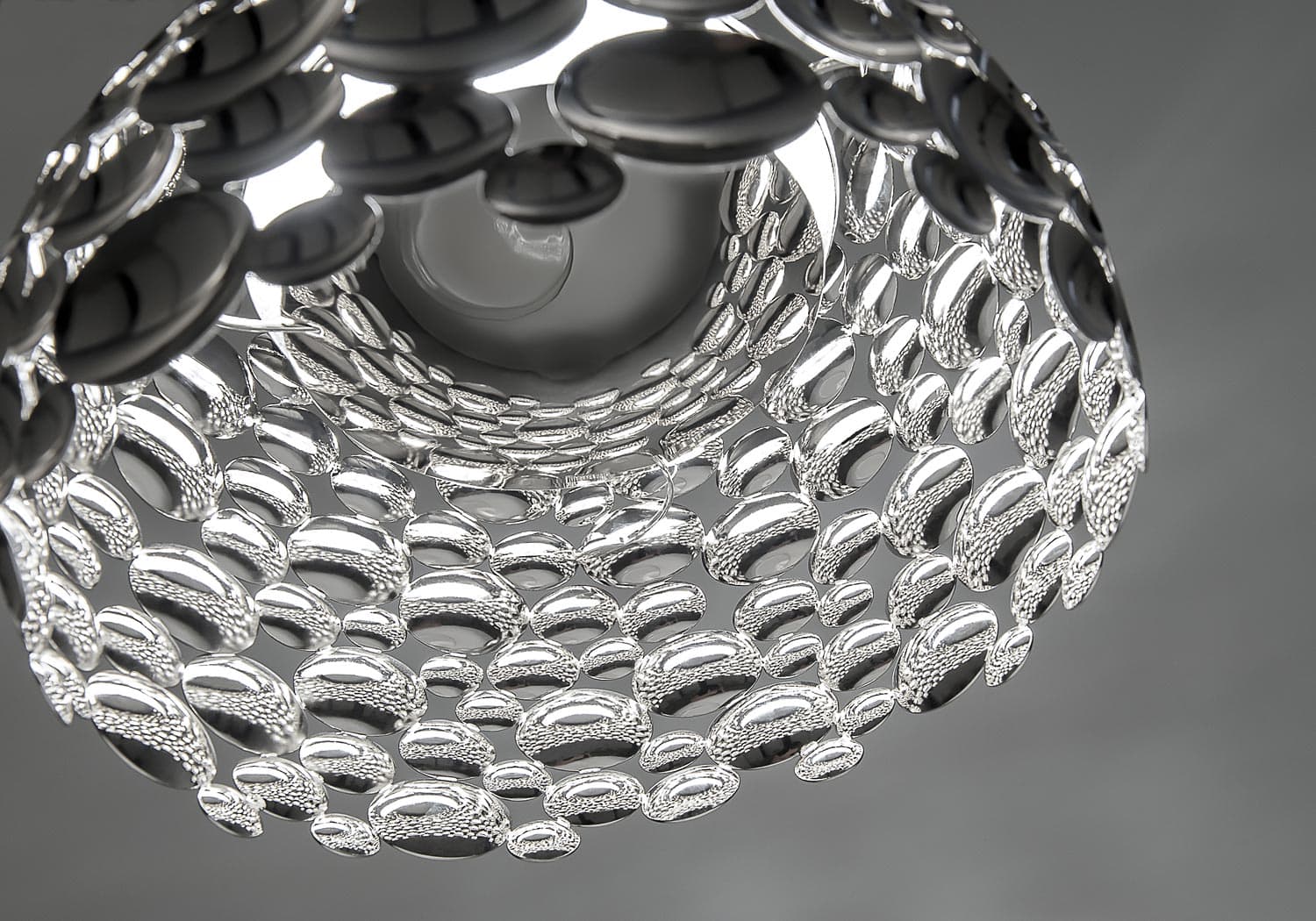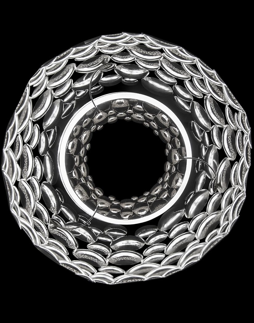Подвесной светильник Terzani Anish Small Nickel из металла цвета никель. Высота подвеса до 190см. Так же в коллекцию входит светильник с диаметром плафона 63см, доступен под заказ.