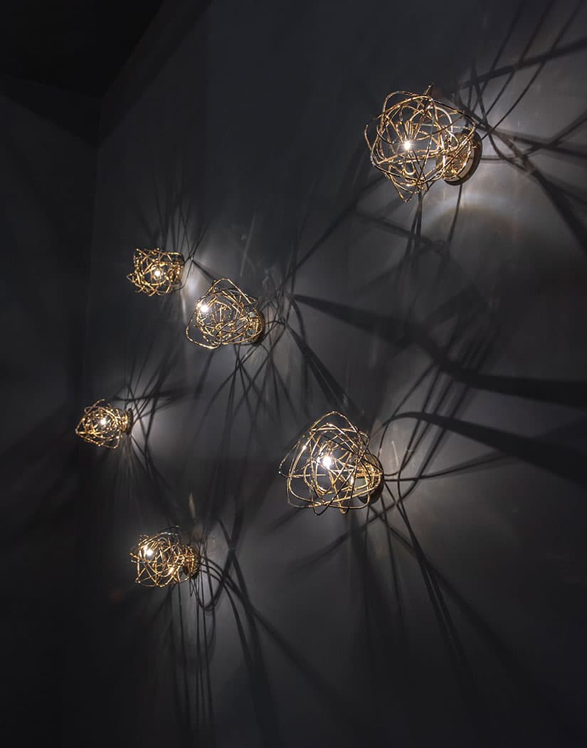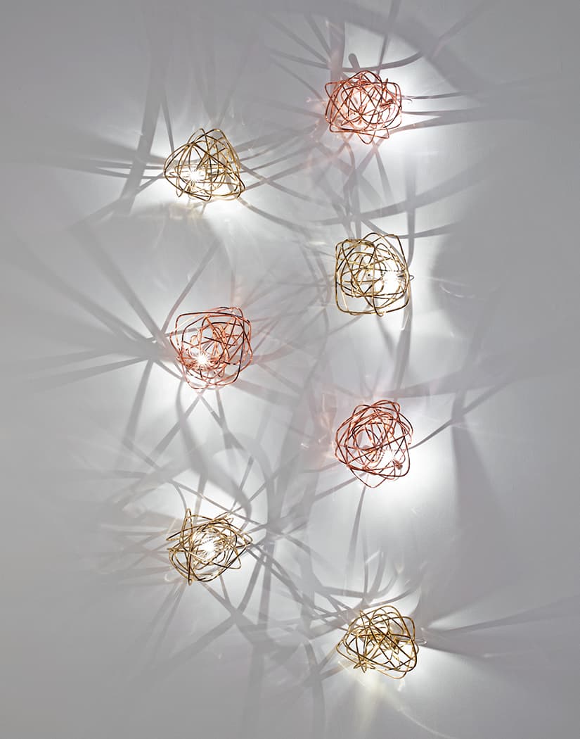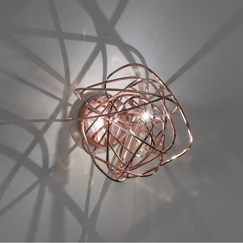 Настенный светильник из коллекции Doodle представляет из себя причудливо переплетенную металлическую проволоку. Отделка металла - медь. Под заказ возможны еще три варианта отделки: черный аметист, золото и никель. Лампочка не входит в комплектацию.