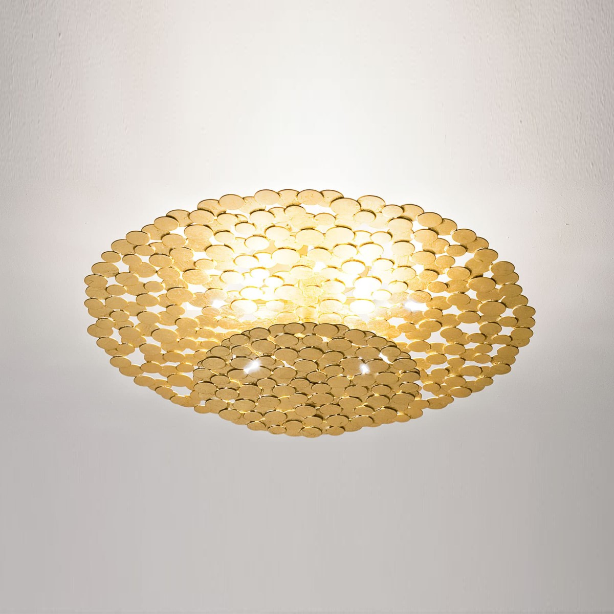 Потолочный светильник Terzani Tresor gold из металла с покрытием золотой фольгой. Ручная работа. Под заказ доступно покрытие серебряной фольгой, а так же диаметр плафона 45см. Лампочки не входят в комплектацию.