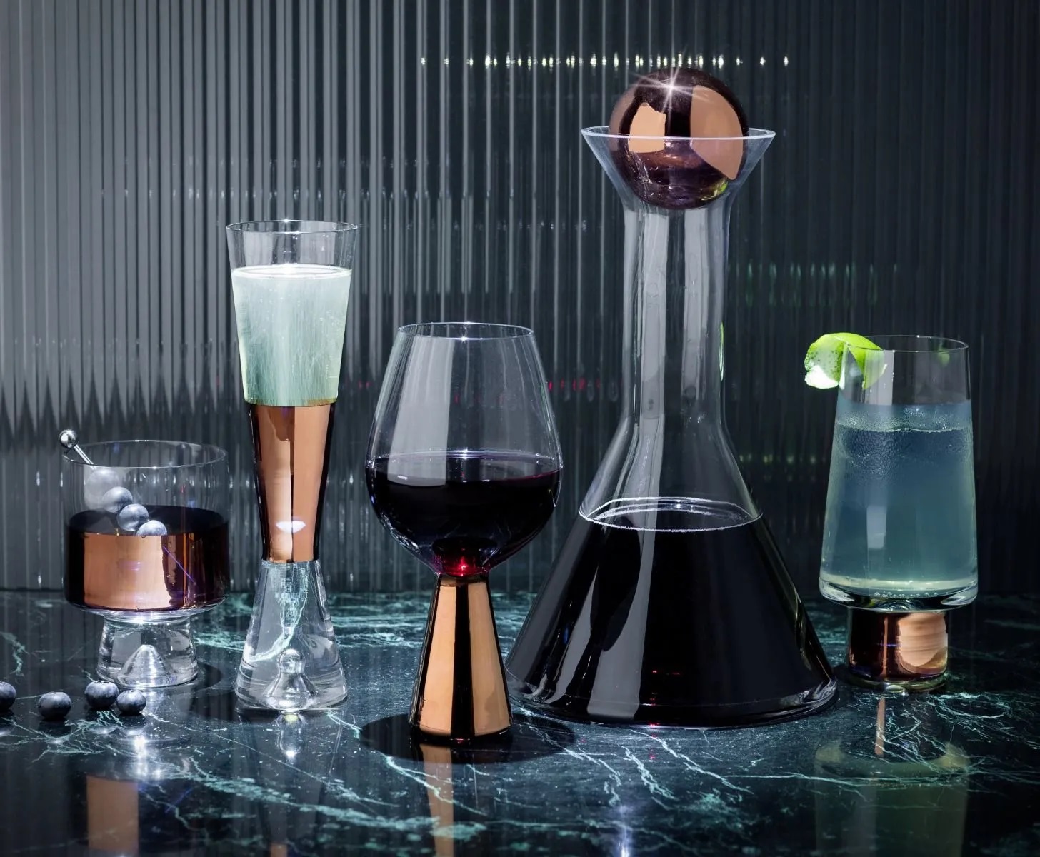Набор из двух бокалов Tank Wine Glasses Copper. В основе скульптурных линий посуды Tom Dixon Tank лежат функциональные формы и объемы лабораторной посуды. Минималистичная, но завораживающе декоративная эта серия дает архитектурные строительные блоки для сервировки и декора стола.