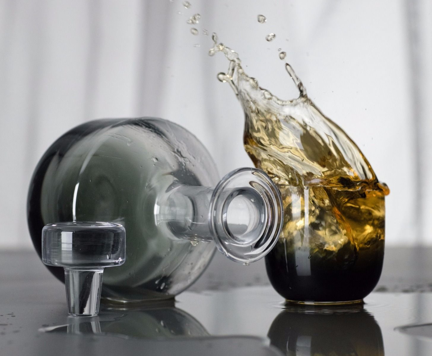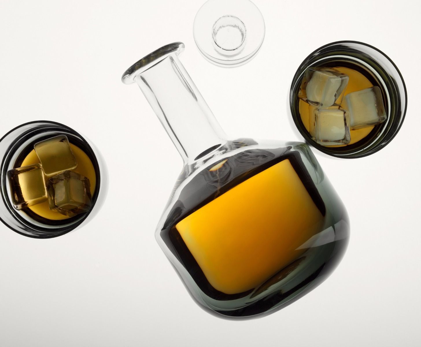 Графин объемом 1 литр выполнен из стекла с градиентом от дымчатого к прозрачному. Нельзя мыть в посудомоечной машине.