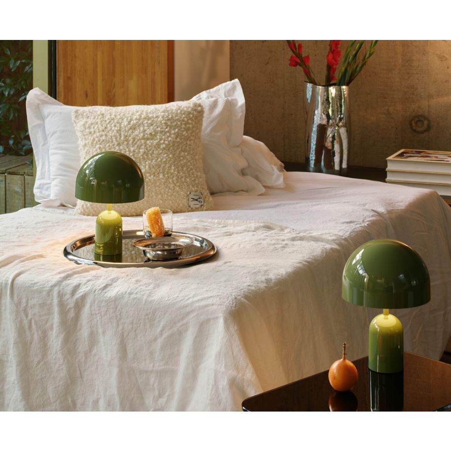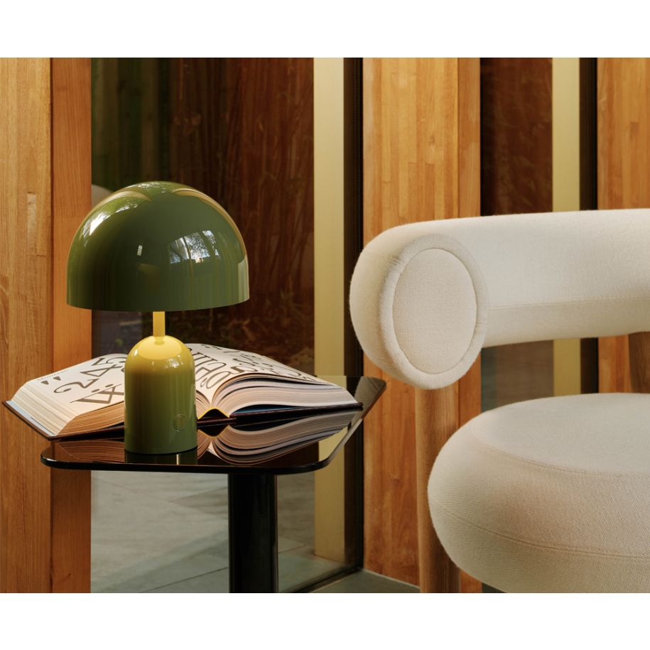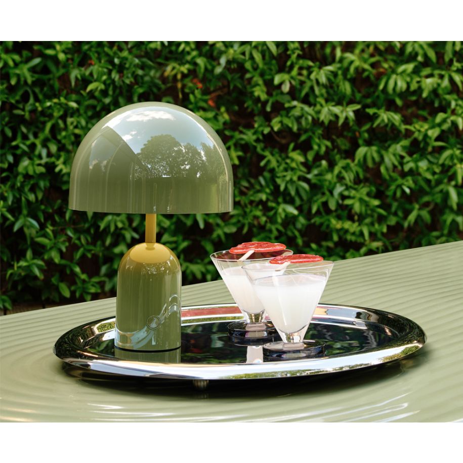 Портативная настольная лампа Tom Dixon Bell Moss с отполированным абажуром оливкового цвета.