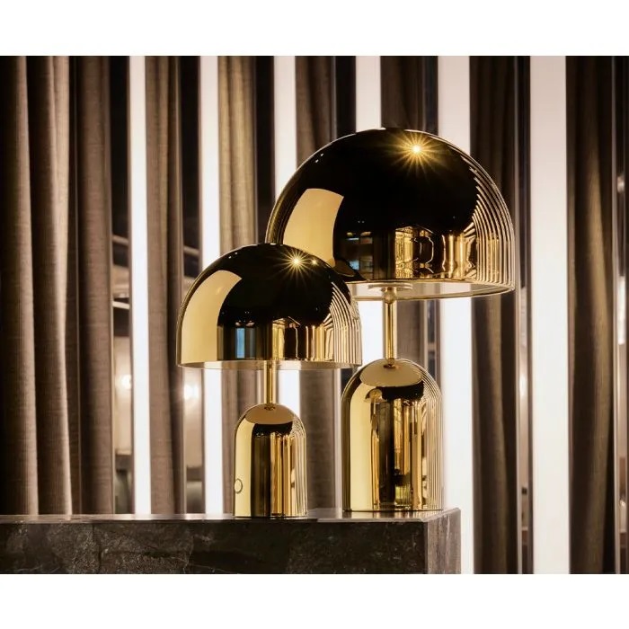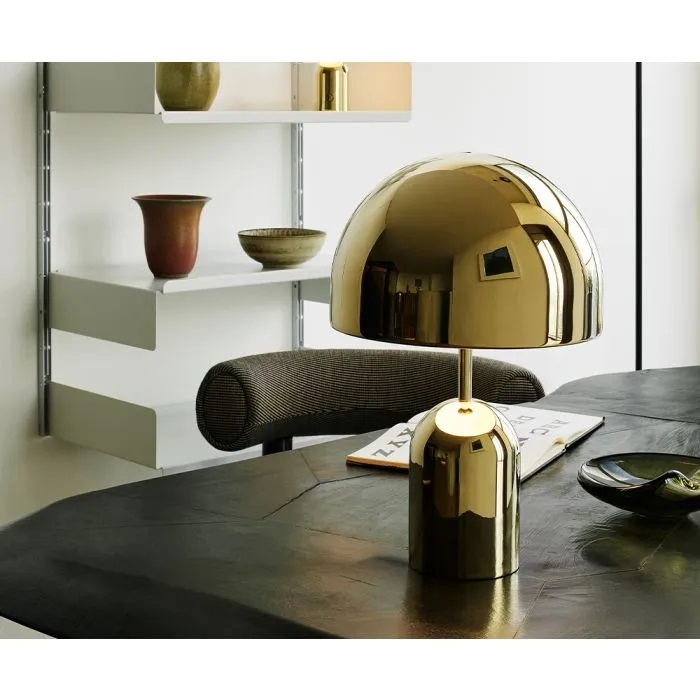 Портативная настольная лампа Tom Dixon Bell gold с отполированным абажуром золотого цвета.