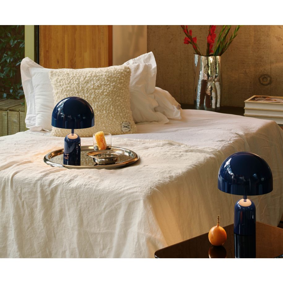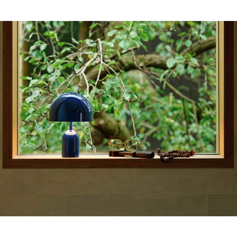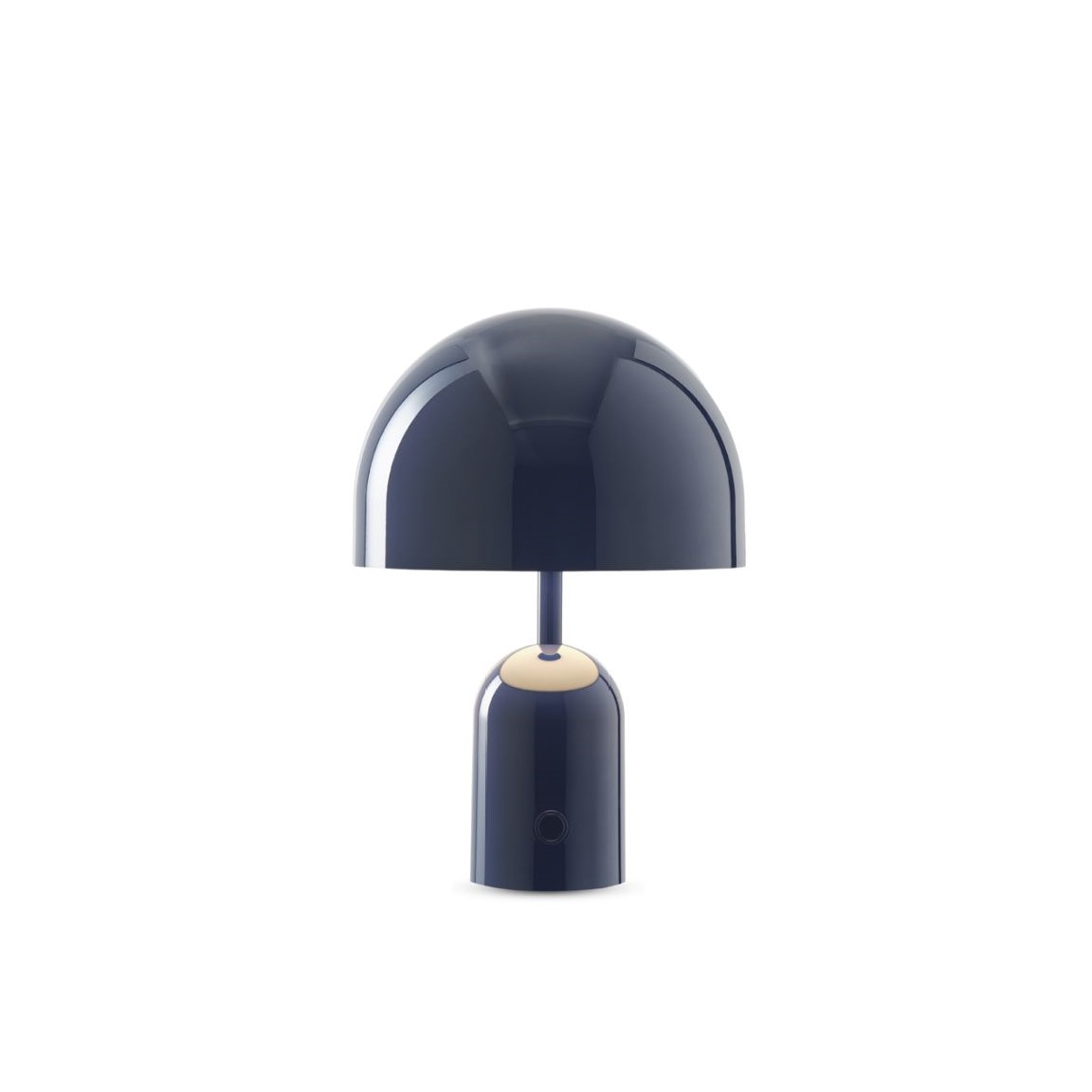 Портативная настольная лампа Tom Dixon Bell Indigo с отполированным абажуром синего цвета.