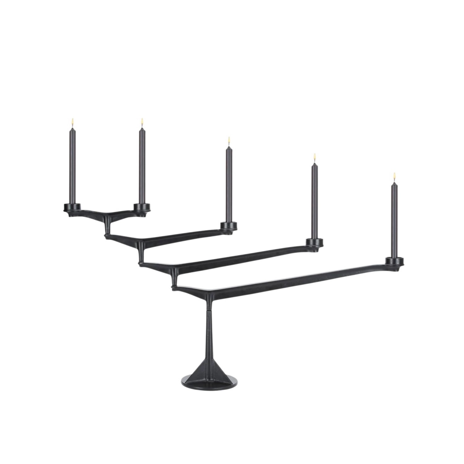 Spin – это образец динамичной инженерной мысли. Spin, разработанный как кинетический центральный элемент стола, позволяет создавать бесконечное количество композиций из свечей. Чугунный подсвечник, способный с одинаковой элегантностью держать как чайные свечи, так и конусные свечи, вдохновлён тяжёлыми консольными механизмами портовых кранов и механической элегантностью мобильных телефонов 1950-х годов.