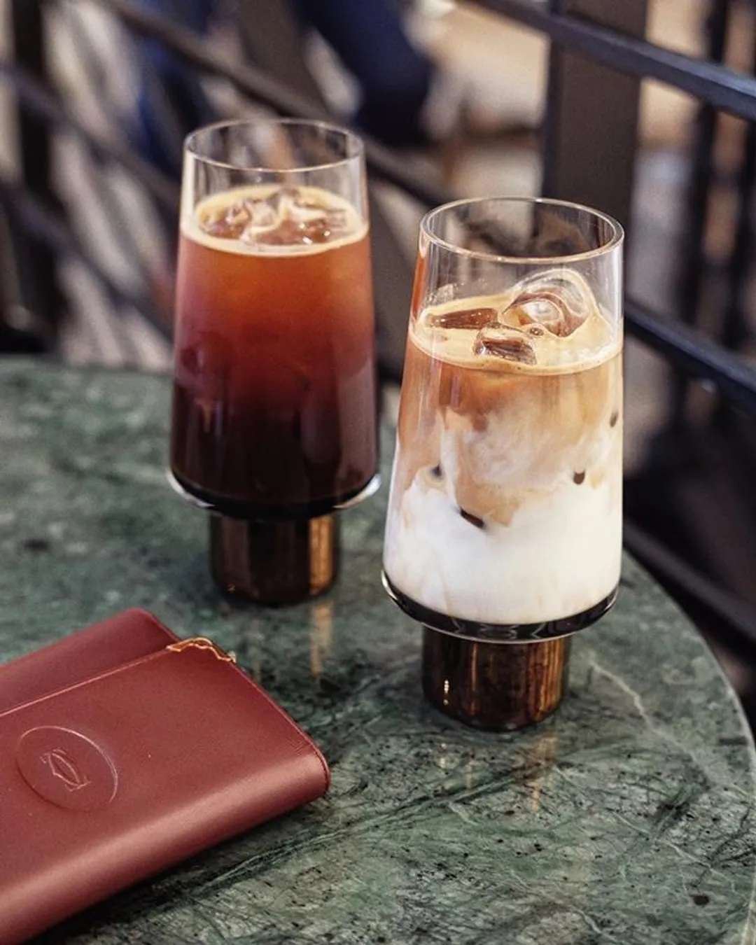 Стаканы изготовлены из прозрачного стекла с медной полосой.