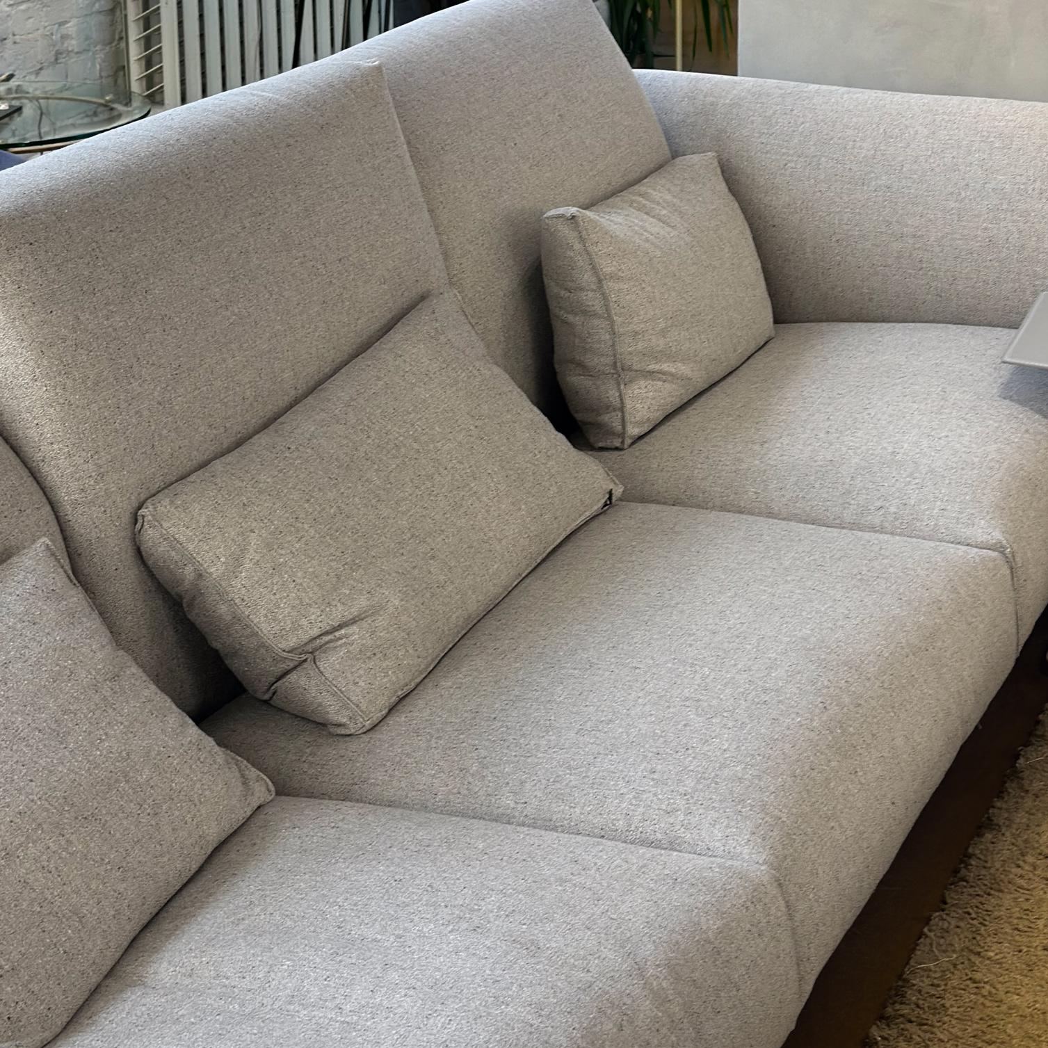 Диван Twils Wing. Отделка из ткани Gallery Art.E05-007 cat.Must. Ножки из металла хромированного цвета. В комплекте 3 подушки 70х40см.