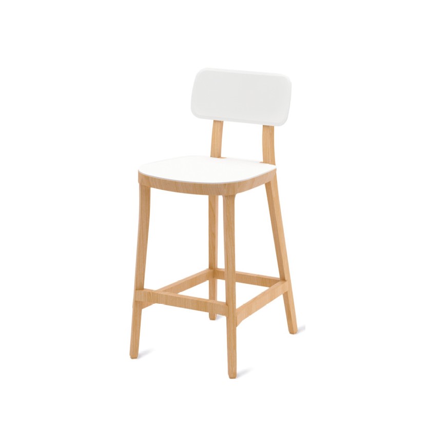 Барный стул Veneta Cucine Baby white. Основание из бука, сиденье из полипропилена белого цвета.