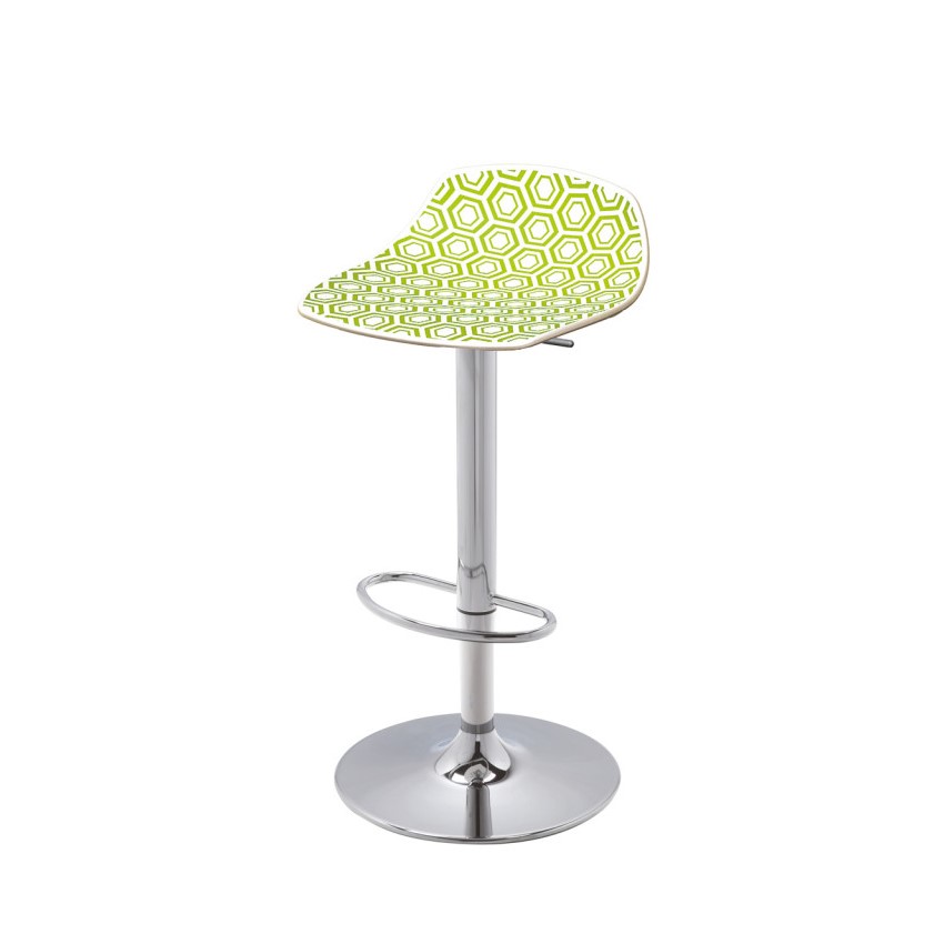 Барный стул Veneta Cucine Medina green. Основание из металла хромированного цвета. Сидение из технополимера зелено-белого цвета. Высота стула регулируется вращением, от 65 до 75см.