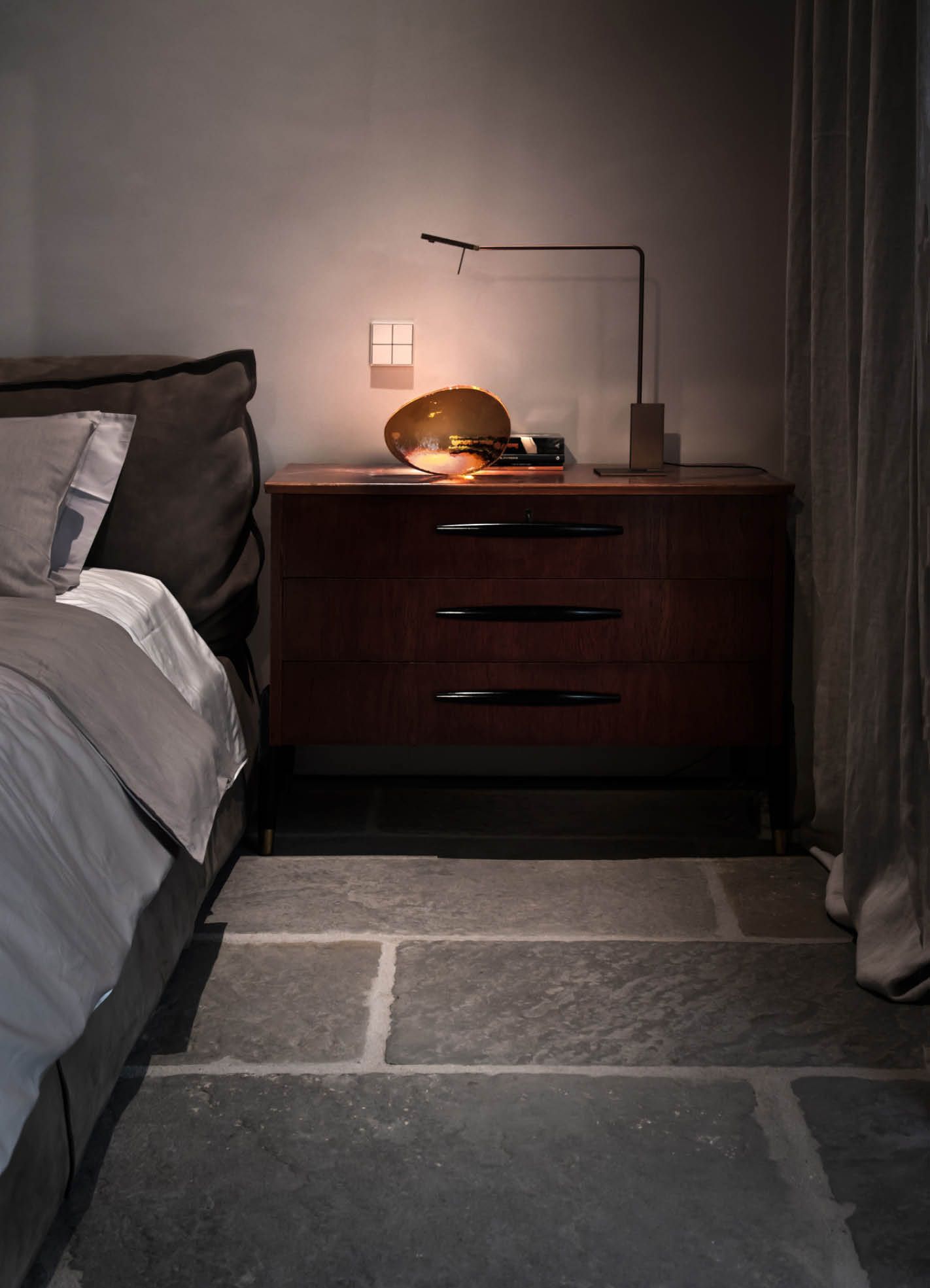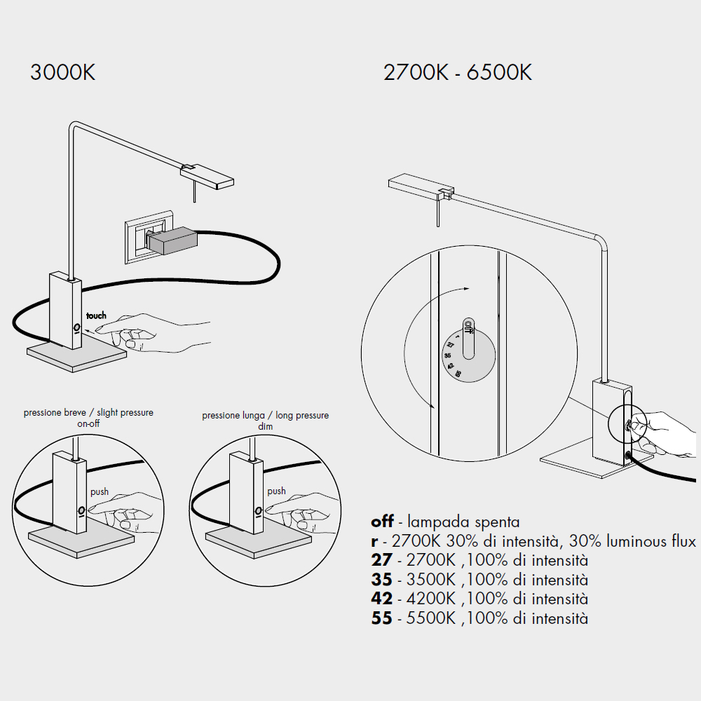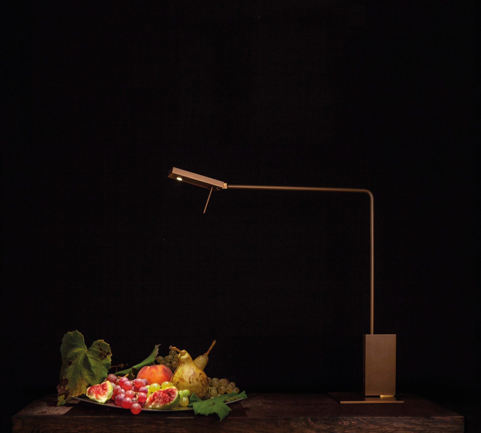 Настольный светильник Viabizzuno Roy copper bronze из металла медного цвета. Рассеиватель регулируется на 270° по горизонтальной оси и на 180° по вертикальной оси, а сама структура на 180° по вертикальной оси. Доступны два типа рассеивателя: diffusa с рассеянным светом и spot с акцентным узким лучом (15 градусов). Лампа может быть с изменяемой температурой свечения. Тогда на основании лампы расположен механический регулятор, с помощью которого меняется температура от 2700K до 6500K. У версии с неизменяемой температурой света (3000K) на основании выключатель с возможностью диммирования.