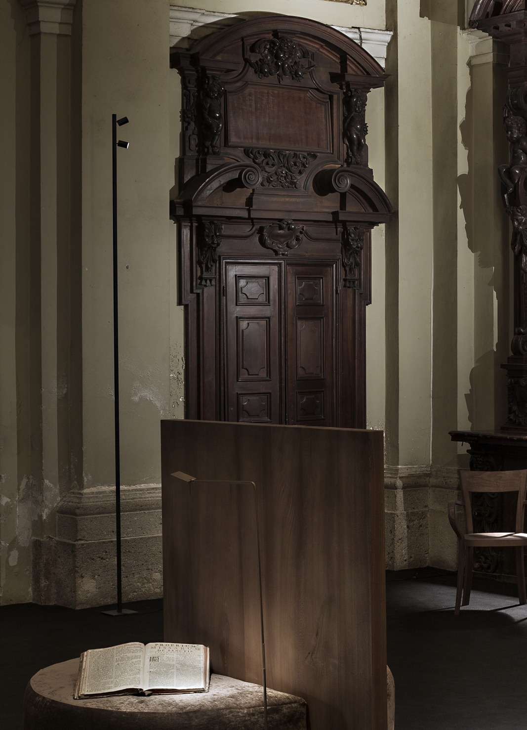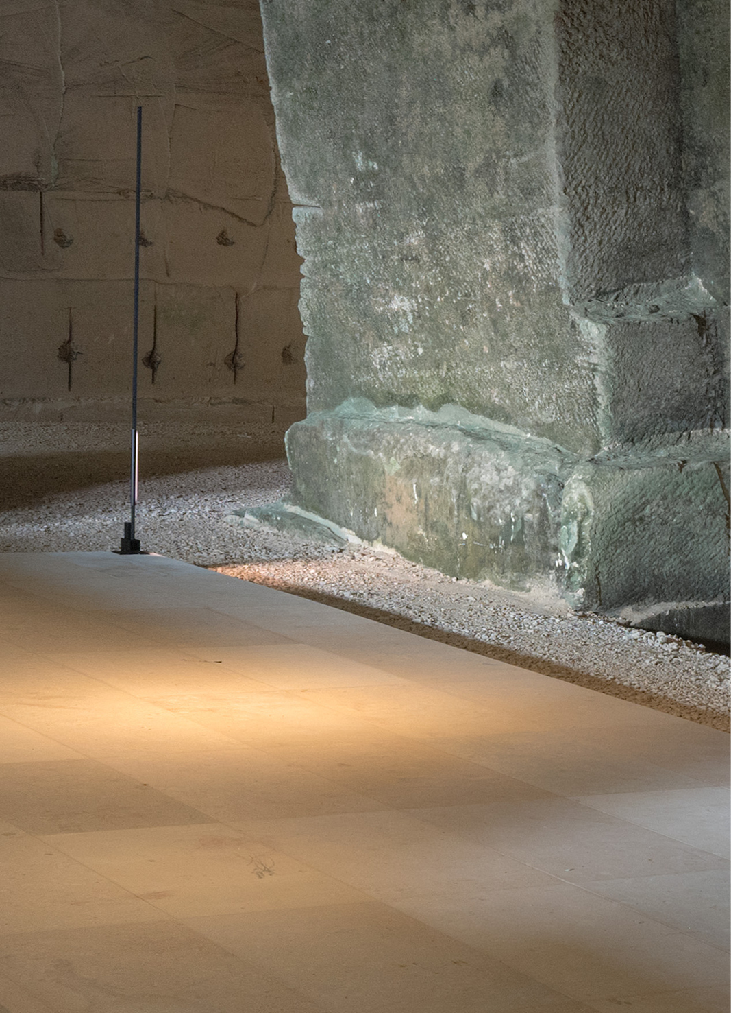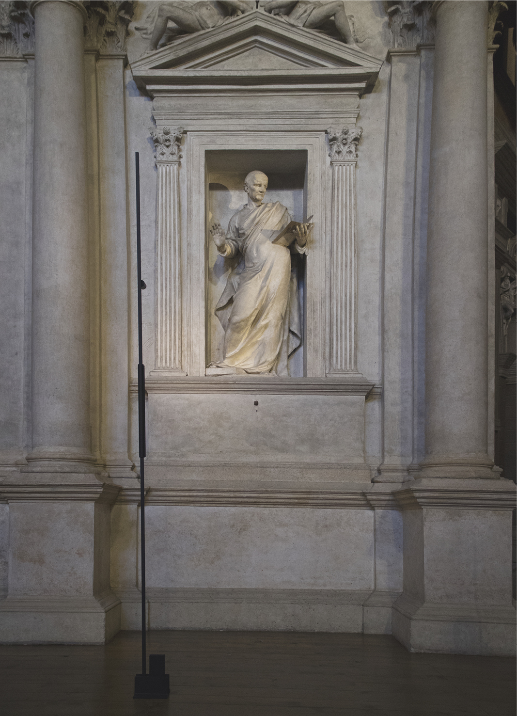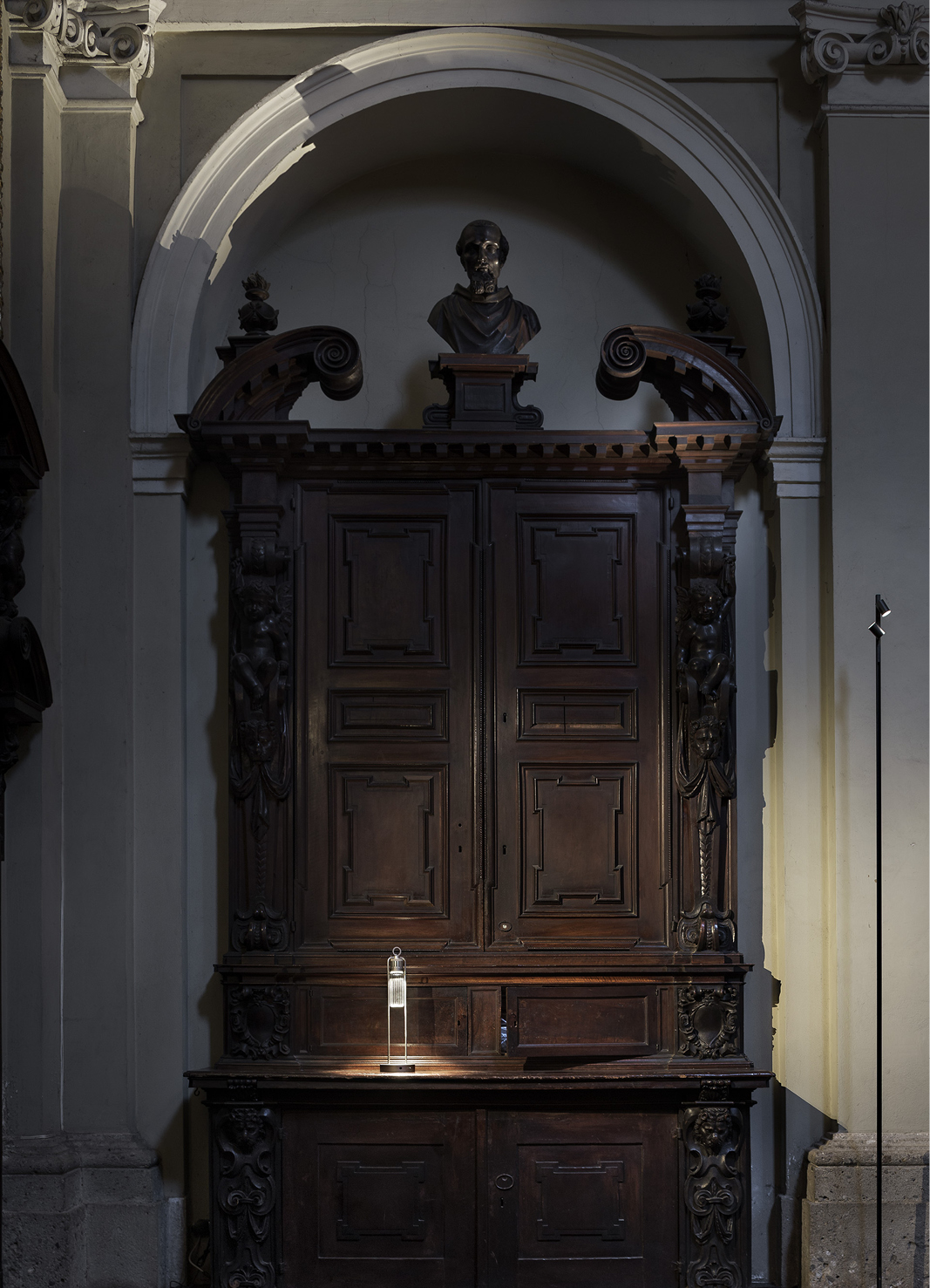 В напольных светильниках Viabizzuno Traccia в качестве структуры используются профили Microtraccia и Tracciameno высотой 180 и 250 см. Данные профили совместимы с разными источниками света: спотами micromen, trentotto и ecomini, декоративными светильниками n35 и n55, а также линейными coppibartali. На основании светильника расположен блок питания. В зависимости от типа блока, доступны разные варианты управления светильником. Светильник полностью выполнен из металл, доступны 2 отделки: серебряная и черная.
