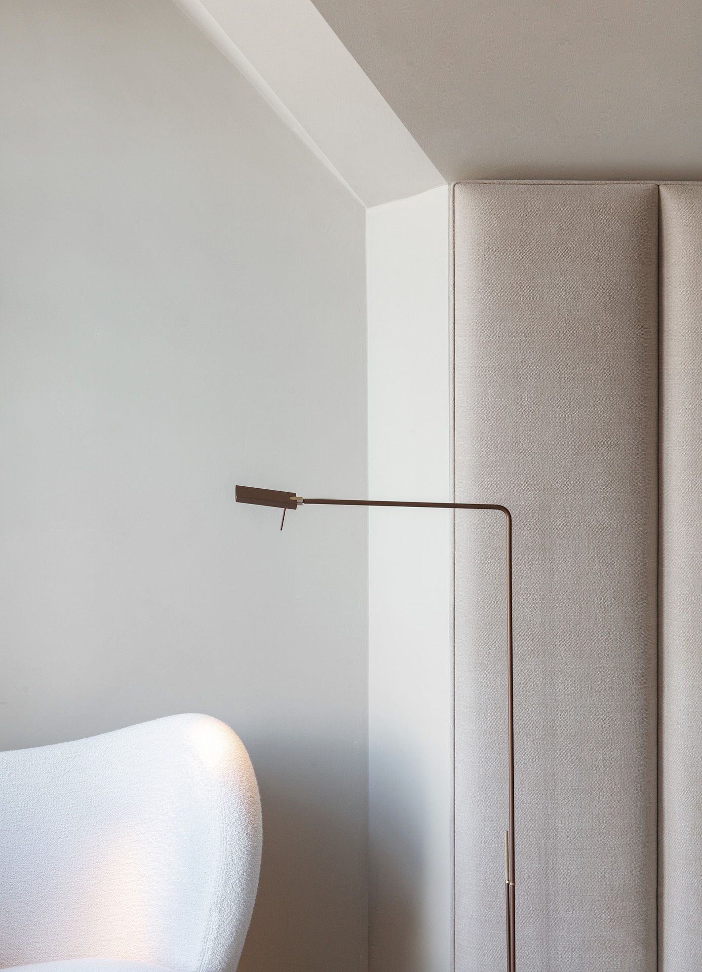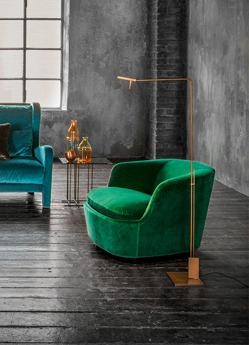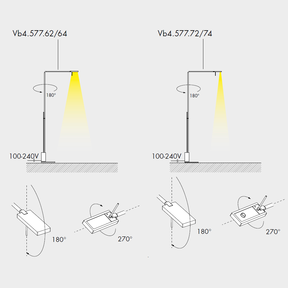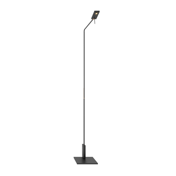 Напольный светильник Viabizzuno Roy nero из металла черного цвета. Рассеиватель регулируется на 270° по горизонтальной оси и на 180° по вертикальной оси, а сама структура на 180° по вертикальной оси. На основании светильника расположен стержень диаметром 8 мм с накаткой на конце, позволяющий включать и регулировать яркость света. Доступны два типа рассеивателя: diffusa с рассеяным светом и spot с акцентным узким лучом (15 градусов).