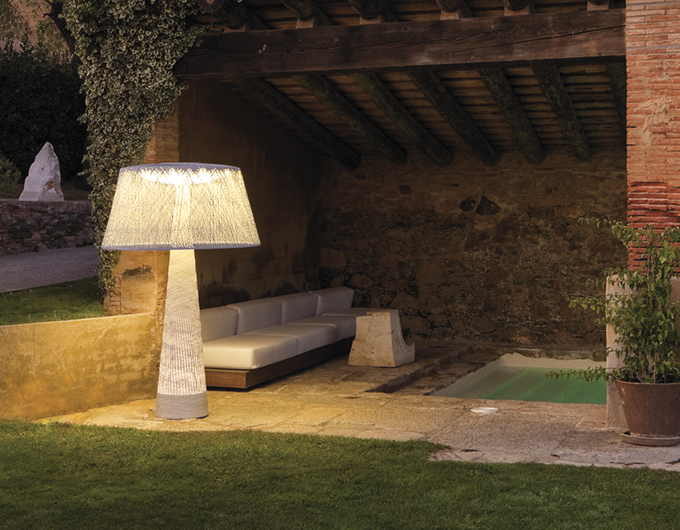 Торшер Vibia 4062 Wind Brown с абажуром из стекловолокна коричневого цвета в авангардном стиле. Он подходит как для интерьера, так и для экстерьера. IP67.