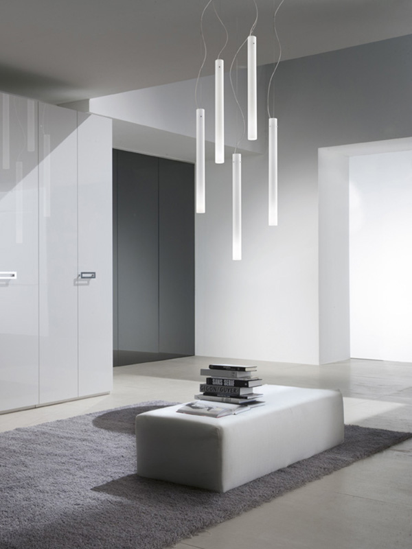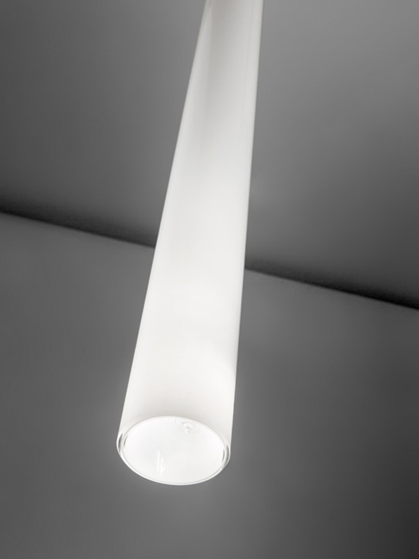 Подвесной светильник Vistosi CANDELA SP из выдувного стекла прозрачного белого цвета, металлические части хромированного цвета. Длина подвеса регулируется, максимум до 200см.