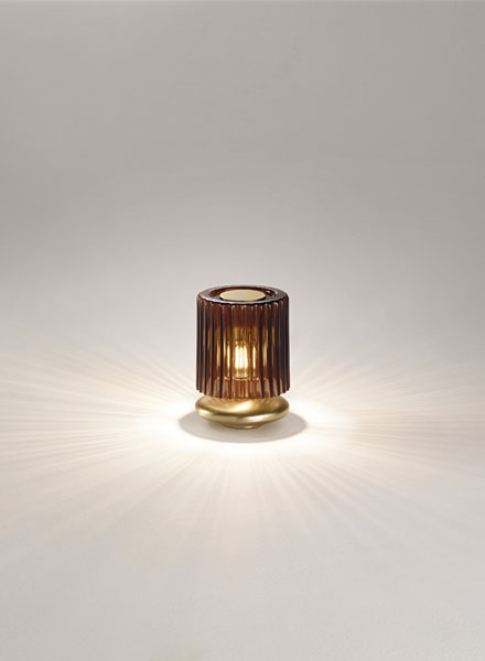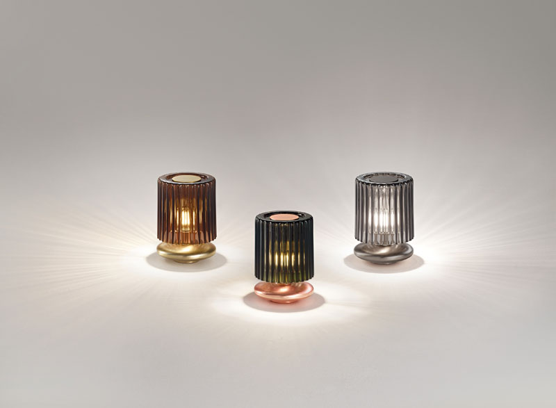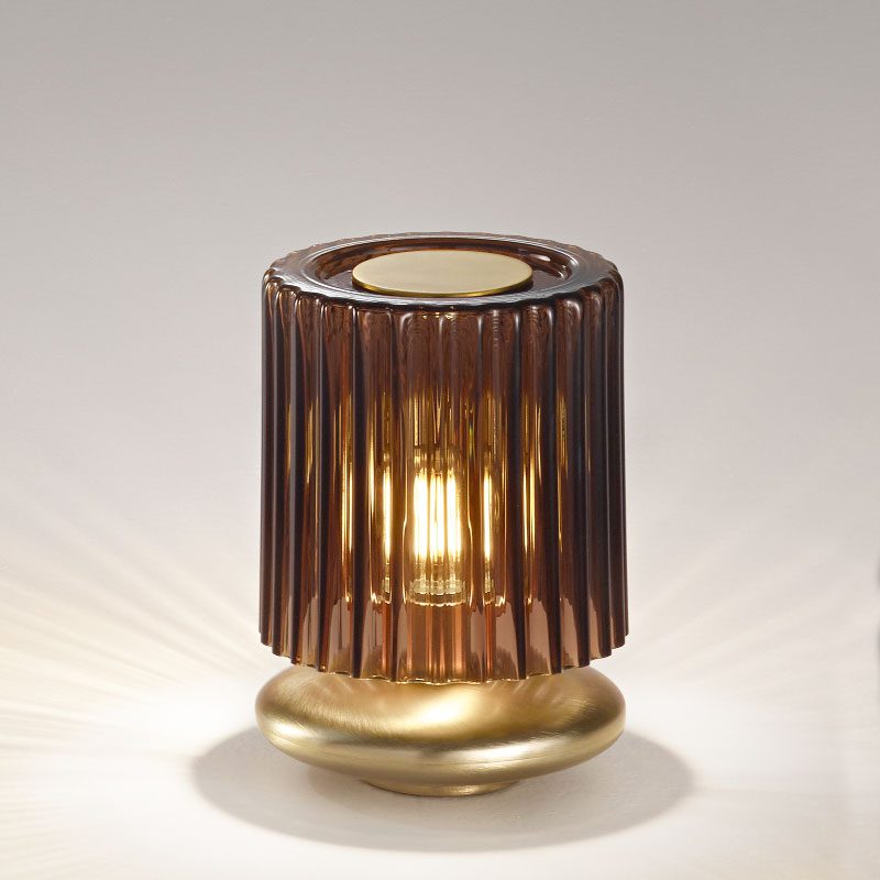 Настольная лампа Vistosi TREAD LT. Плафон из муранского стекла прозрачного болотного цвета в сочетании с металлом медно-розового цвета. Дизайн: Chiaramonte & Marin 2019.