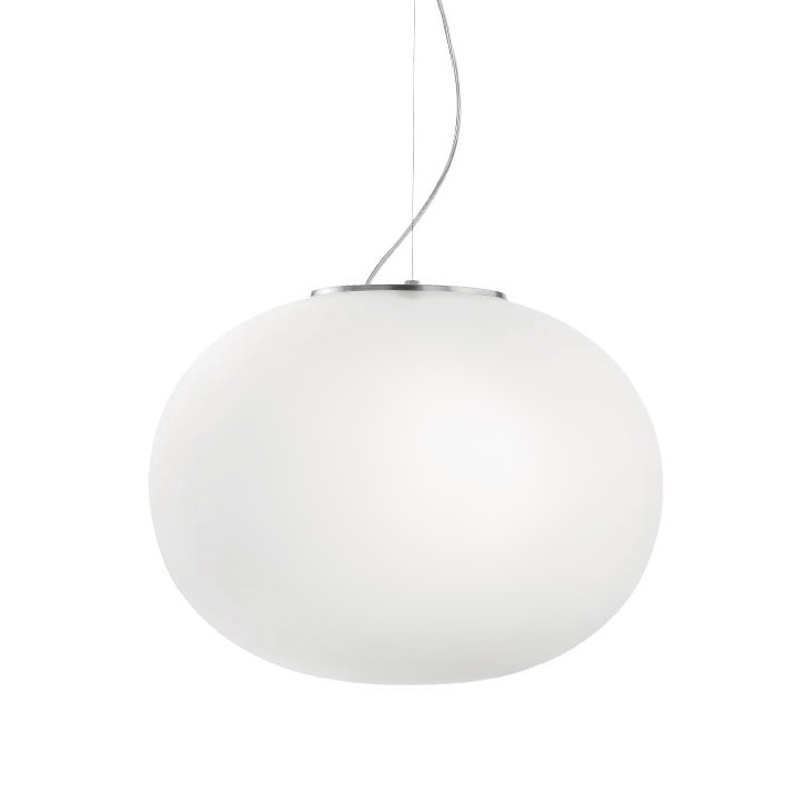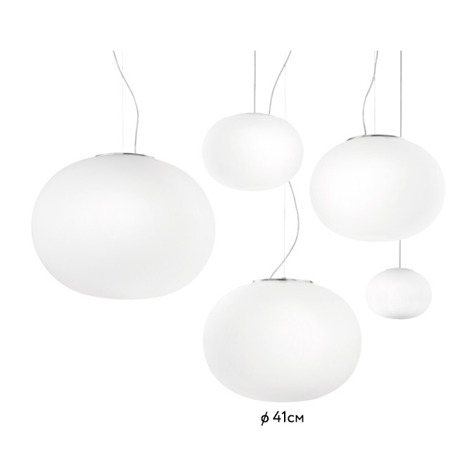 Подвесной светильник из коллекции LUCCIOLA на никелированной арматуре. Плафон из матового стекла белого цвета. Высоту светильника можно регулировать до 120 см. Дизайн: Studio tecnico Vetreria Vistosi.