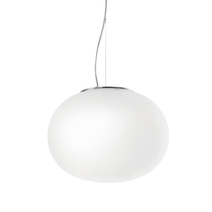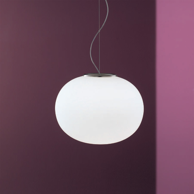 Подвесной светильник из коллекции LUCCIOLA на никелированной арматуре. Плафон из матового стекла белого цвета. Высоту светильника можно регулировать до 120 см. Дизайн: Studio tecnico Vetreria Vistosi.