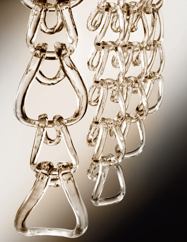 Подвесной светильник из коллекции MINIGIOGALI на хромированной арматуре. Плафон из прозрачного муранского стекла выполнен в виде фигурных петель. Высоту светильника можно регулировать до 120 см. Дизайн: Angelo Mangiarotti.