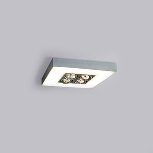 Потолочный светильник из коллекции FLAT с четырьмя лампами. Корпус светильника выполнен из анодированного алюминия, детали - из железа. Цвет - белый.
