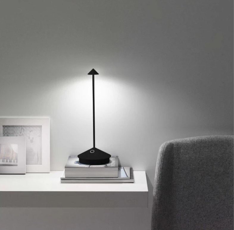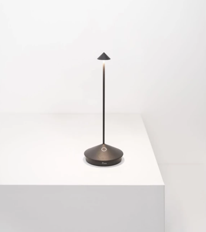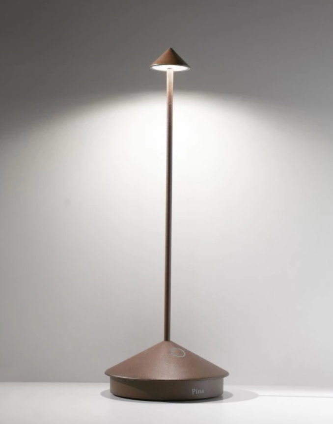 Портативная перезаряжаемая настольная лампа с регулируемой яркостью украсит интерьер спальни, гостиной, рабочего кабинета и любого жилого или коммерческого пространства благодаря актуальному дизайну. Корпус из окрашенного алюминия и светодиодным источником света защищен от воздействия пыли и влаги IP54, позволяя использовать лампу внутри помещений или снаружи.