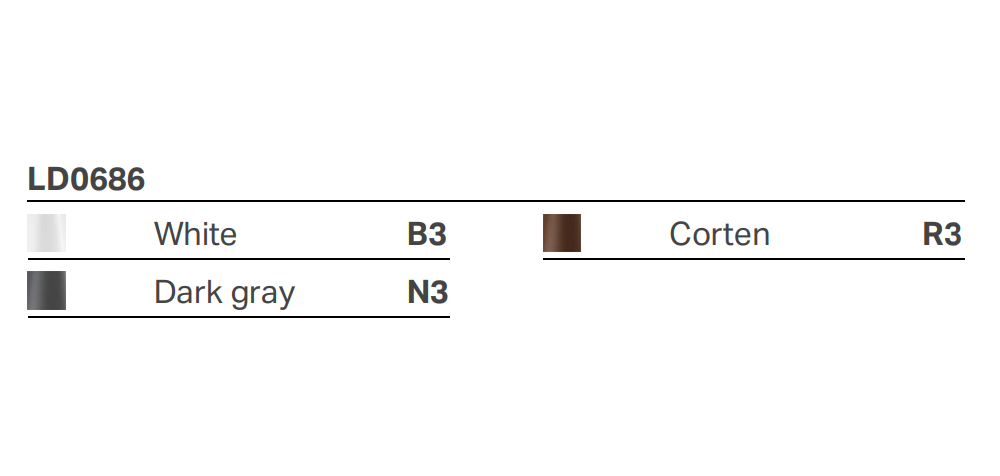 На выбор доступны универсальные цвета подвесной версии Poldina — белый, темно-серый и коричневый («кортеновская сталь»).
