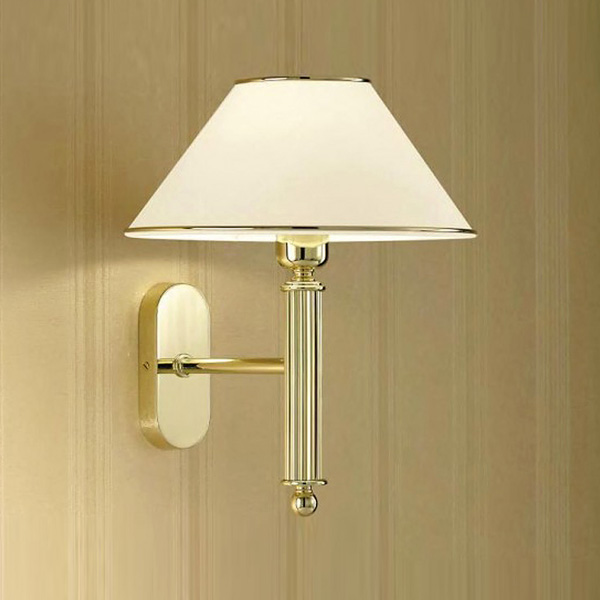 Бра однорожковое с пергаментным абажуром цвета слоновая кость. Цвет арматуры - полированная латунь.